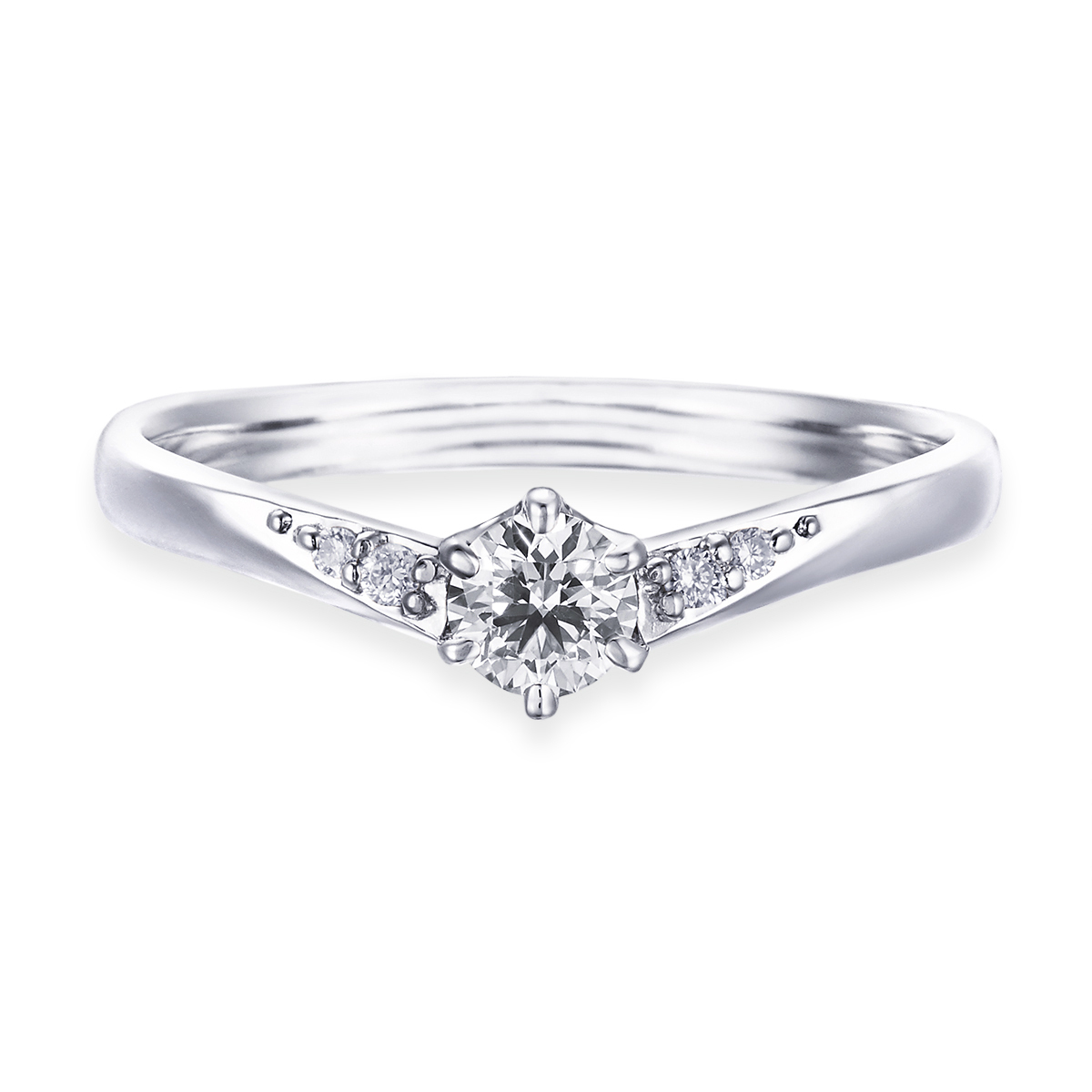 緩やかなV字ラインが指を美しく魅せてくれるエンゲージリング。
