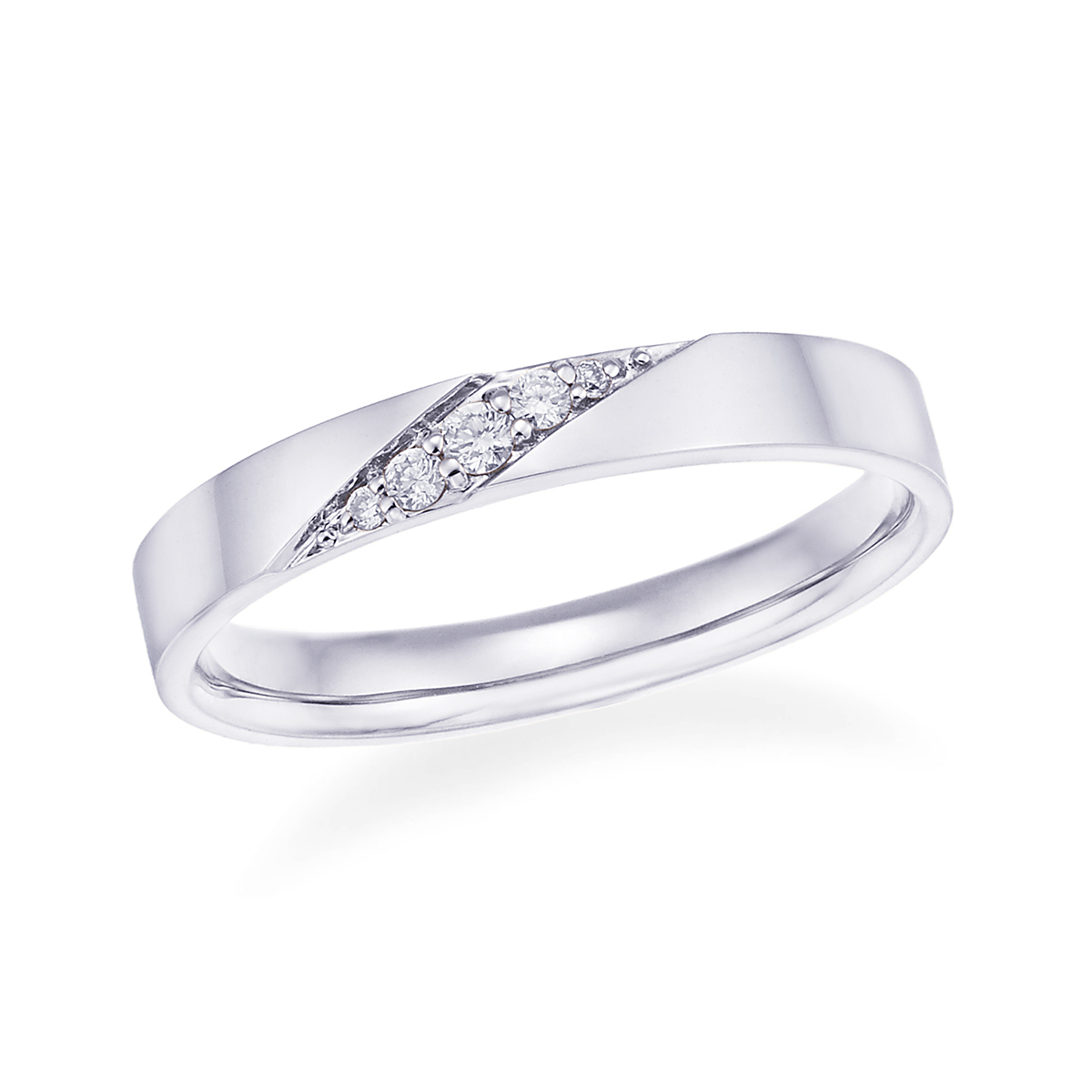 つや感が美しいコンテンポラリーなデザインのマリッジリング。