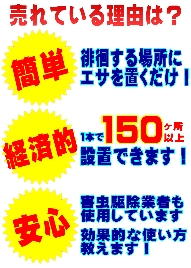 食べた徘徊不快害虫はもちろんの事、食べた徘徊不快害虫の糞や死骸を食べても効果があります。
