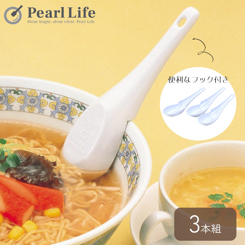 パール金属 レンゲ スプーン 3本組 フック付 食洗機対応 ラーメン どんぶり ホワイト 中華家 CC-1561