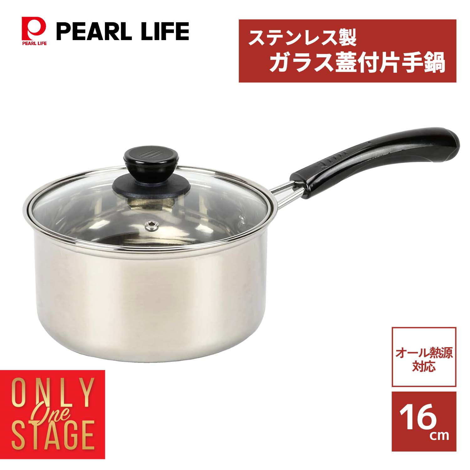 パール金属 片手鍋 16cm ガラス蓋付 ステンレス製 オール熱源対応 オンリーワン・ステージ HB-6153