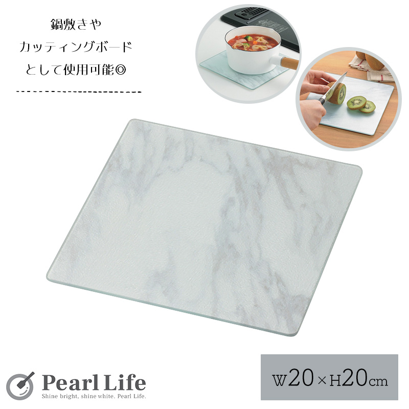 パール金属 キッチンプレート ガラスプレート 耐熱温度200度 鍋敷き カッティングボード マルチプレート ランチョンマット スレート 幅20×奥行20×厚さ0.7cm 強
