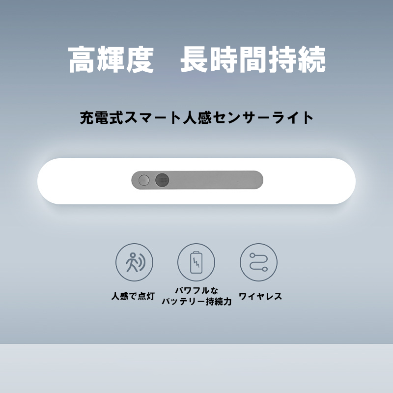 商品名:LEDセンサーランプ 、サイズ :180*43*25mm 、材質:ABS 、定格電圧:2.6-5V 、消費電力:1.25W、電池容量:1200mAh、