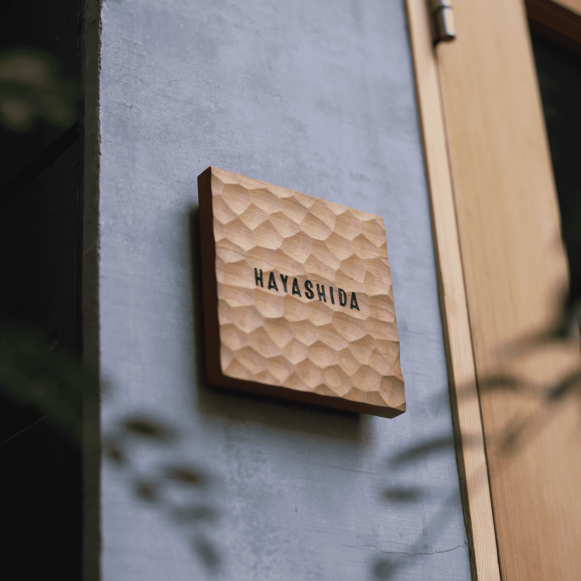 当店の表札は、ガラス塗料で仕上げを行っております。透明感のある仕上がりで、風合・質感を損なわずに仕上がります。経年による色落ちはある程度は避けられませんが、無垢材の美しさは長期間キープできます。