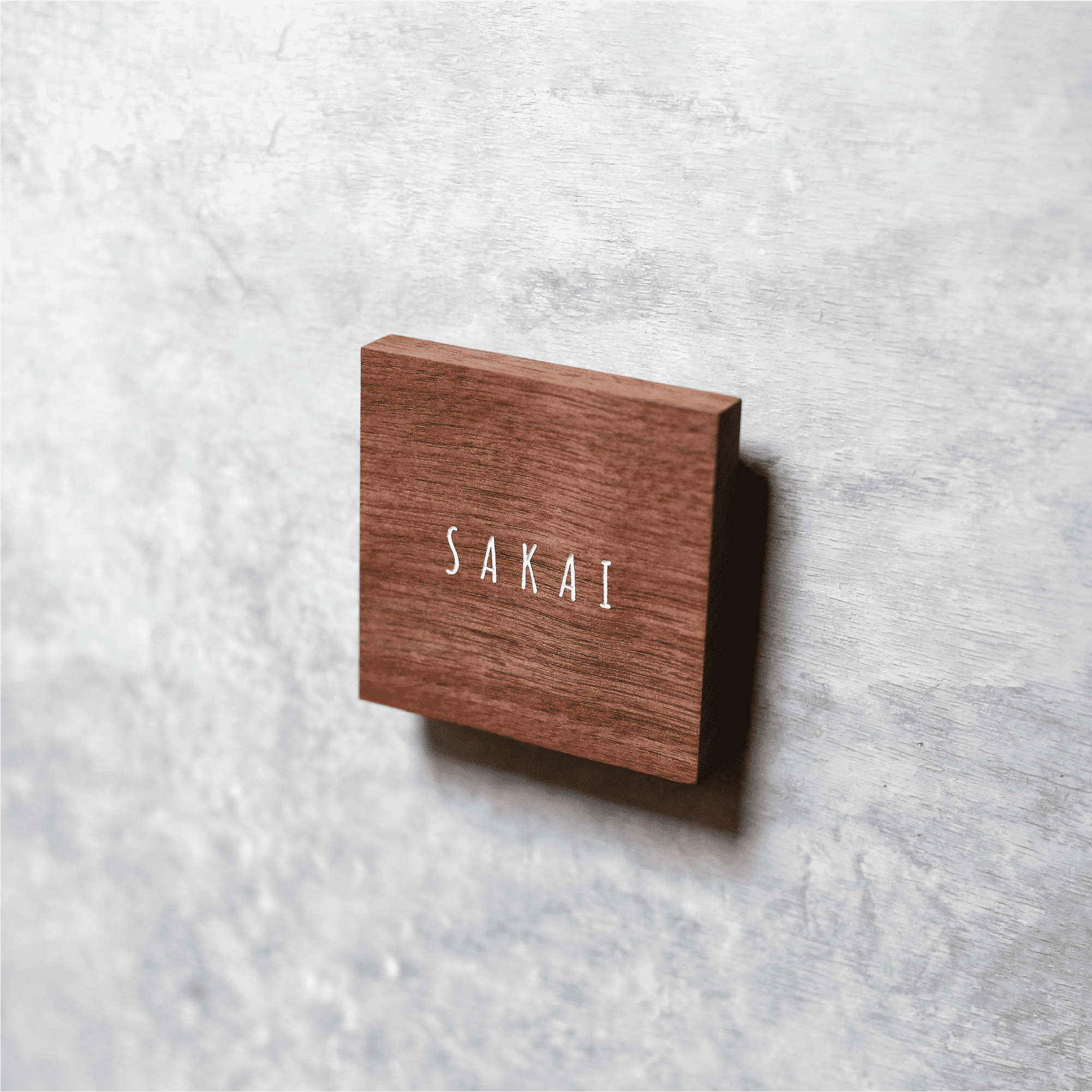 木製表札 「Square S」表札 ケヤキ ウォールナット デザイン表札 戸建 新築 木製 正方形 銘木表札 天然木 日本製90×90×25mm
