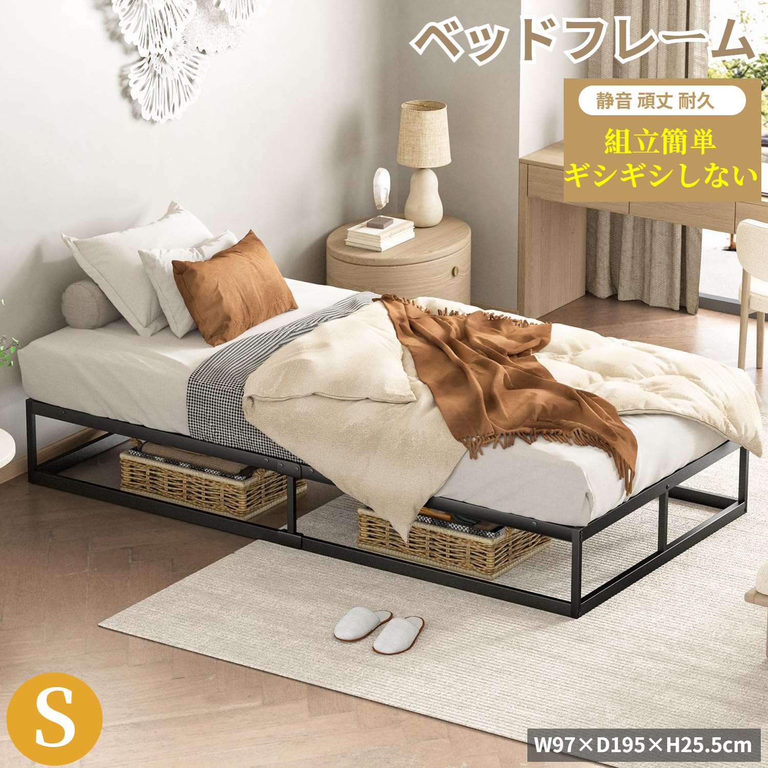 【優れた安定性・静音性・耐久性・通気性を兼ね備え】優れた安定性・静音性・耐久性・通気性を実現させるシングルベッドフレームです。 心地の良い睡眠をサポートして、ぐっすり軽快に眠れます。