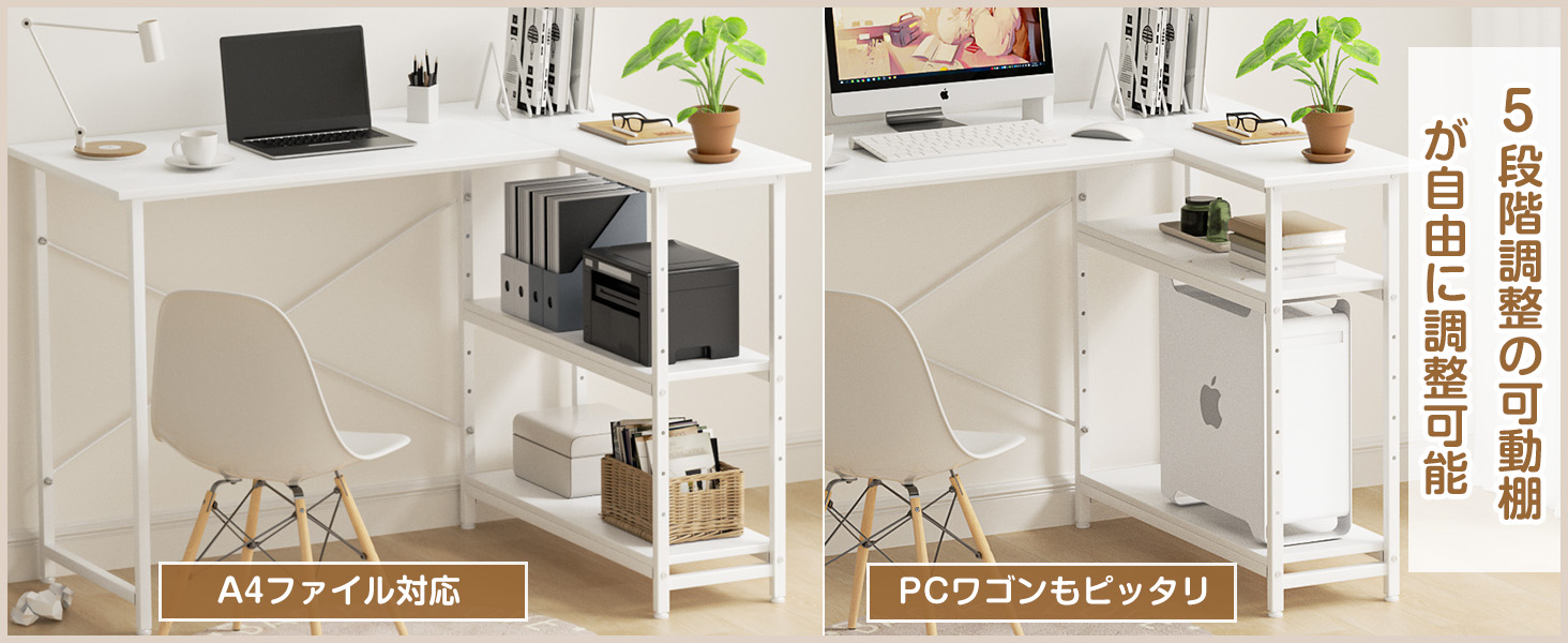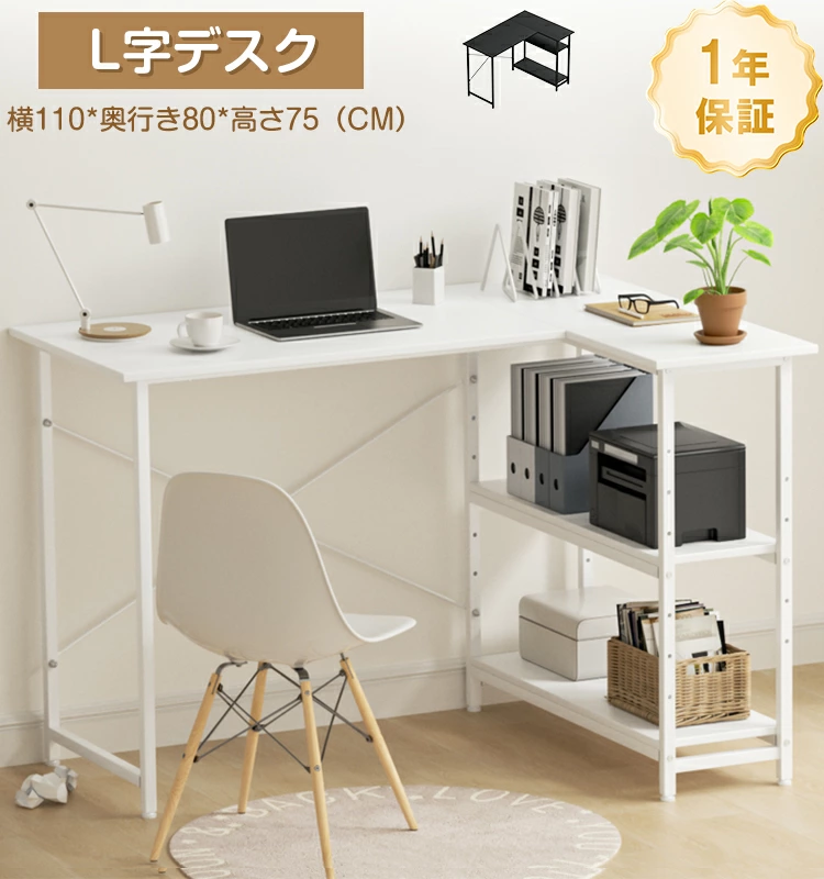 pcデスク l字デスク パソコンデスク 幅110cm 机 コーナーデスク 棚板高さ5段可動 ワークデスク 省スペース 書斎 オフィスデスク シンプル L字型 作業机 勉強机