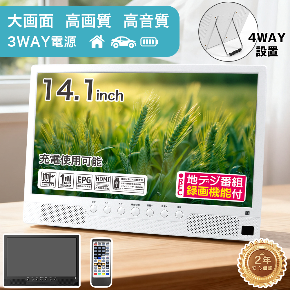 こちらの14.1インチポータブルテレビの重量がわずか0.9kgと非常に軽いです。厚さ2.8cmとスリムにデザインされているのが特徴。高齢者でも女性でも片手で楽に持ち運びできます。狭い部屋においても場所を取らないから快適に動画とアニメを見れます。リモコンが付属しているので、離れたところに操作可能です。