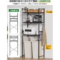 冷蔵庫ラック ゴミ箱上ラック 幅60×奥行40×高さ180cm キッチンベイカーラック 小型冷蔵庫対応 3枚可動棚 高さ11段調節 レンジ収納 総耐荷重45kg フック16個付