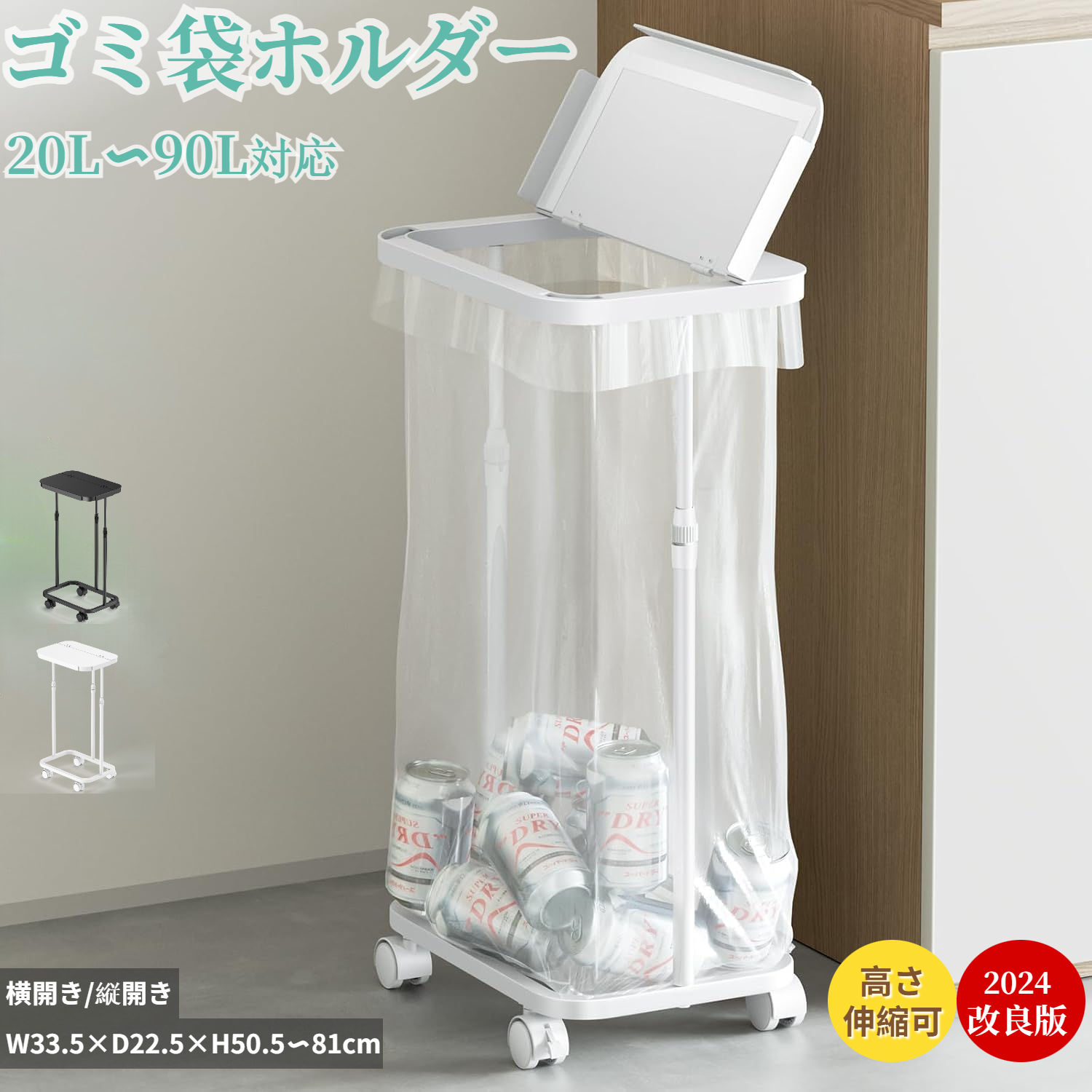 ゴミ袋ホルダー フタ付き 横開き 高さ調整 ゴミ袋スタンド スリム 20L〜90L対応 大容量 分別ゴミ袋ホルダー ワイド開口 フレームゴミ箱 ダストスタンド レジ袋