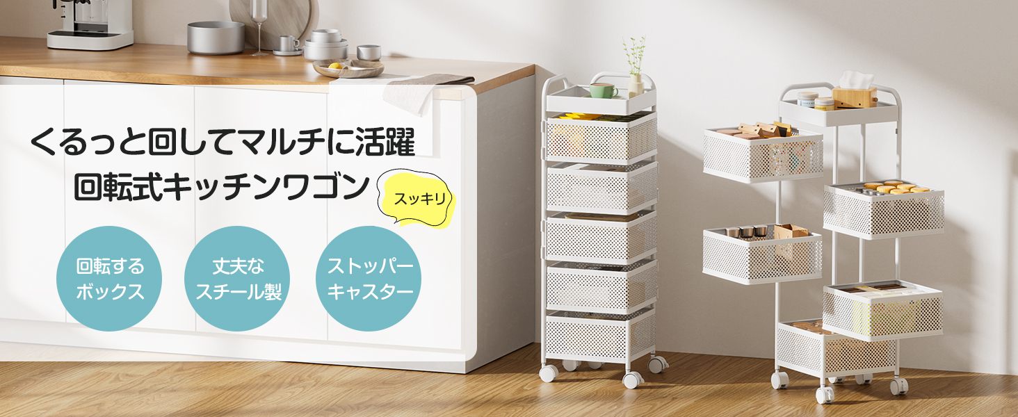 キッチンワゴン キャスター付き 4段 5段 キッチンラック 大容量 回転式 カゴ 左右開く 収納ワゴン 野菜ストッカー 調味料 ストック棚 収納カート スリム 隙間