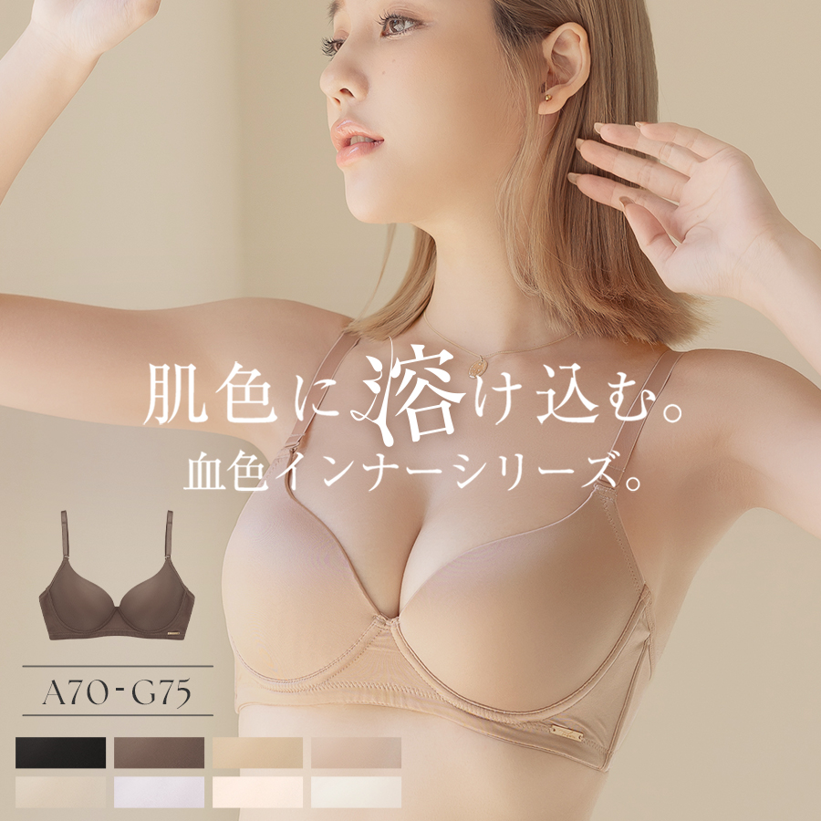 どんな肌にも馴染みやすい血色カラーは肌と調和して美肌を演出し、肌もバストも魅力的にみせてくれます。