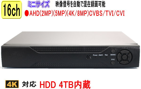 防犯カメラ監視カメラDVR 録画機16ch(HDD4TB タイプ)AHD&TVI(4K.5M.4M.1080p.720p)CVI映像とアナログ(CVBS)を録画再生可能 PC,Android,iPhoneからの遠隔監視対応