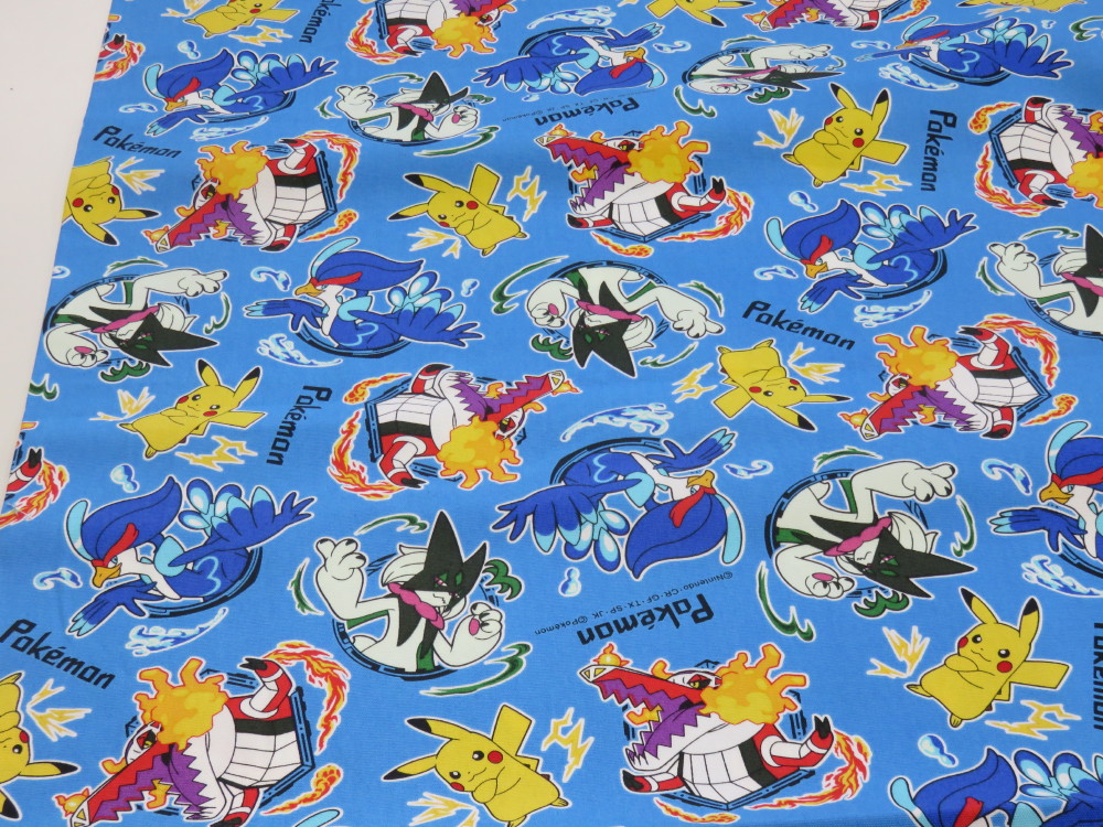 ポケットモンスター ポケモン 総柄 ブルー オックス生地 キャラクター 108cm幅 日本製 綿100% コットン 布 切り売り 入園入学 ハンドメイド レッスンバック