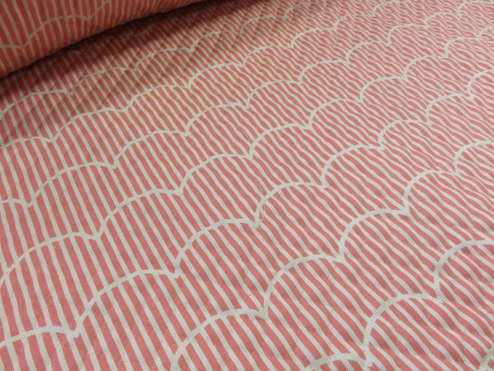北欧風ストライプ&ウェーブ ピンク キルト キルティング 生地 布地 プリント コットン 入園 男の子