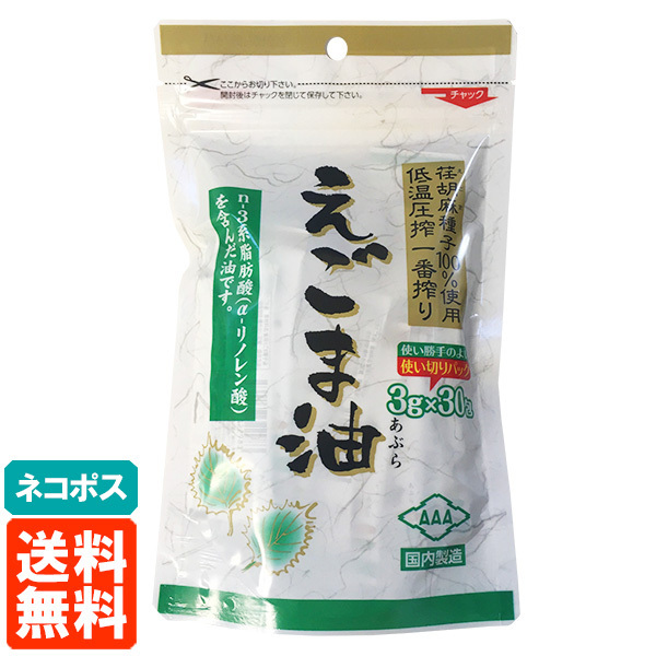 朝日 えごま油 3g×30包 使い切りパック(個包装) 低温圧搾一番搾り 送料無料 ネコポス