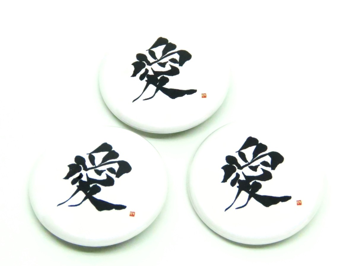 愛 缶バッジ 3個セット LOVE KANJI 書道 日本のお土産 グッズ