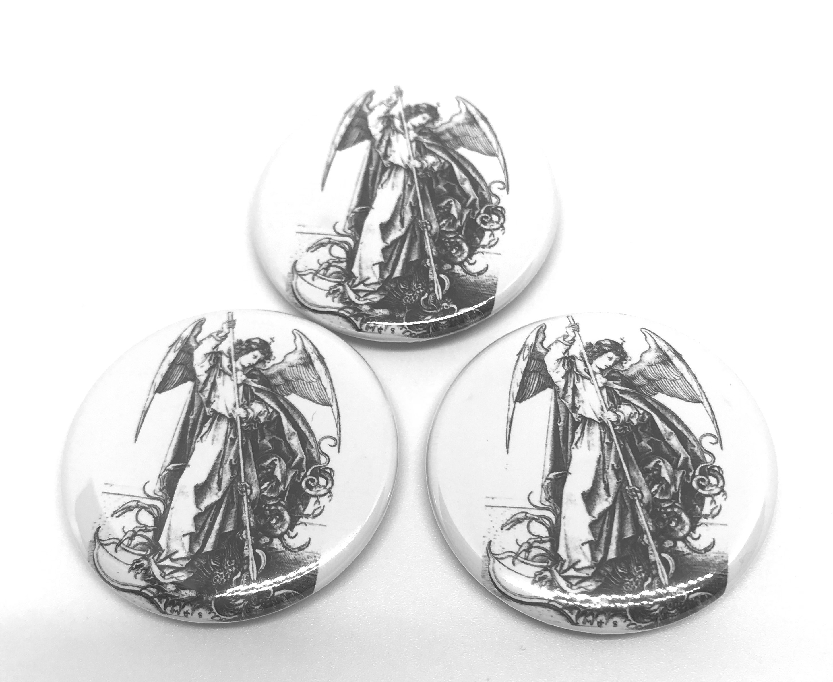 マルティン・ショーンガウアー 大天使ミカエル 缶バッジ 3個セット 名画 版画 天使 グッズ 絵画 キリスト教