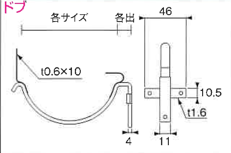 ♯ニイガタ製販 樋受金具 面打 OT先折面打 1.5×4 サイズ 120 ドブ カラー 生地(無塗装、シルバー) 5分出 代引き不可