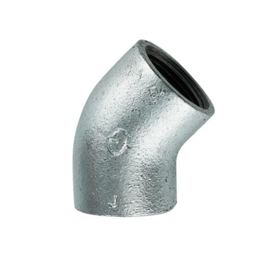 白ガス管を45度に繋ぐための継手です。両サイドに内ネジが切ってあります。