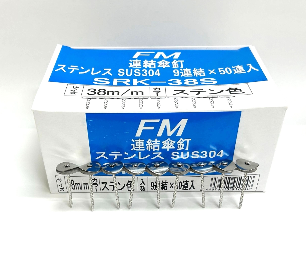 バラ出荷!波板用 ステンレス連結傘釘 ステン連結傘釘 38mm シルバー 9連結×1個(9本)※在庫状況によりメーカー変わる可能性あり