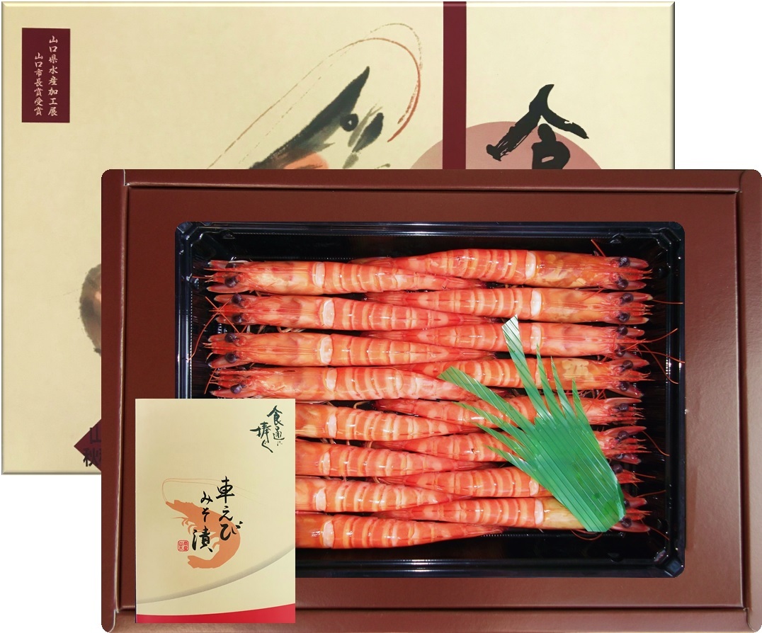 国産(山口産、九州産)の車えびをボイルし、オリジナルの味噌にじっくりと1週間漬け込みました。