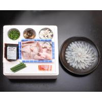 原材料;とらふぐ(大分県産養殖)刺身(生食用解凍)アラ(加熱用)皮・身皮(ボイル済)ひれ(加熱済)、ポン酢(本醸造醤油、純米酢、粗製糖、天日塩、柚果汁、鰹エキス、昆布エキス、原材料の一部に小麦、大豆を含む)、ねぎ、もみじおろし(大根、人参、醸造酢、水あめ、香辛料、酒精、モナスカス色素)