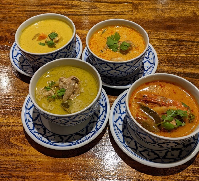 宮崎県で有名なエスニック料理ハロハロがお届けする、カレー3種とトムヤムクンのセットです。カレーは濃厚なココナッツミルクと具材がベストマッチで、癖になります。辛すぎず酸っぱ過ぎないトムヤムクンは、本場以上かもしれません。