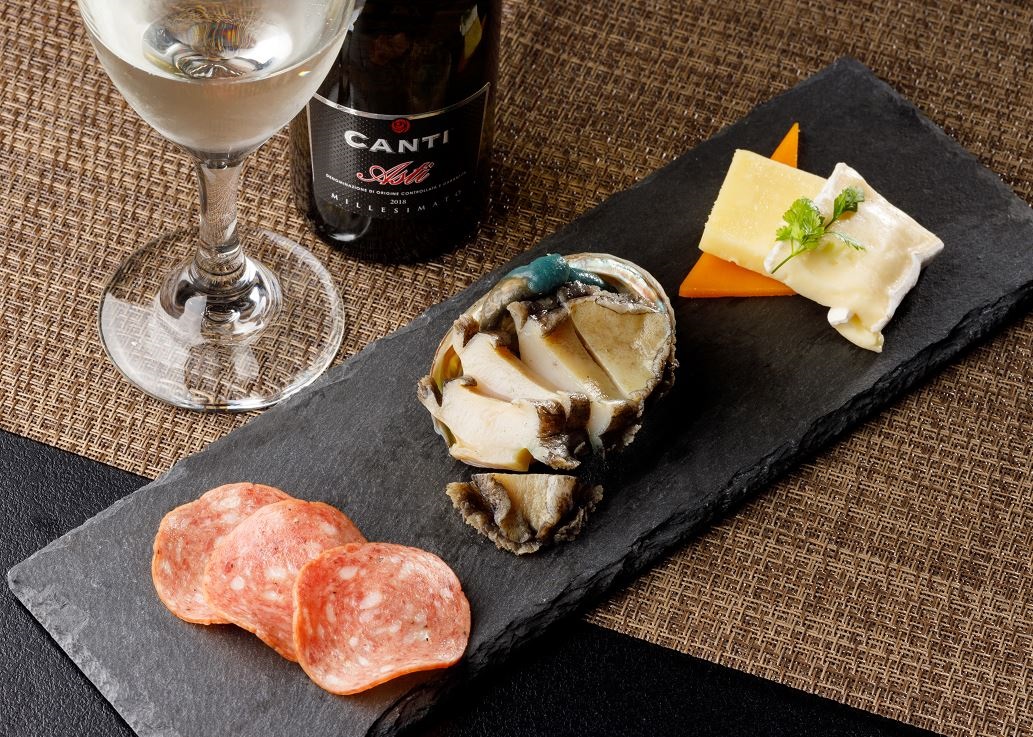 スライスすれば食べられる、味付きの燻製あわび。お気に入りの1杯とともに、お楽しみください。