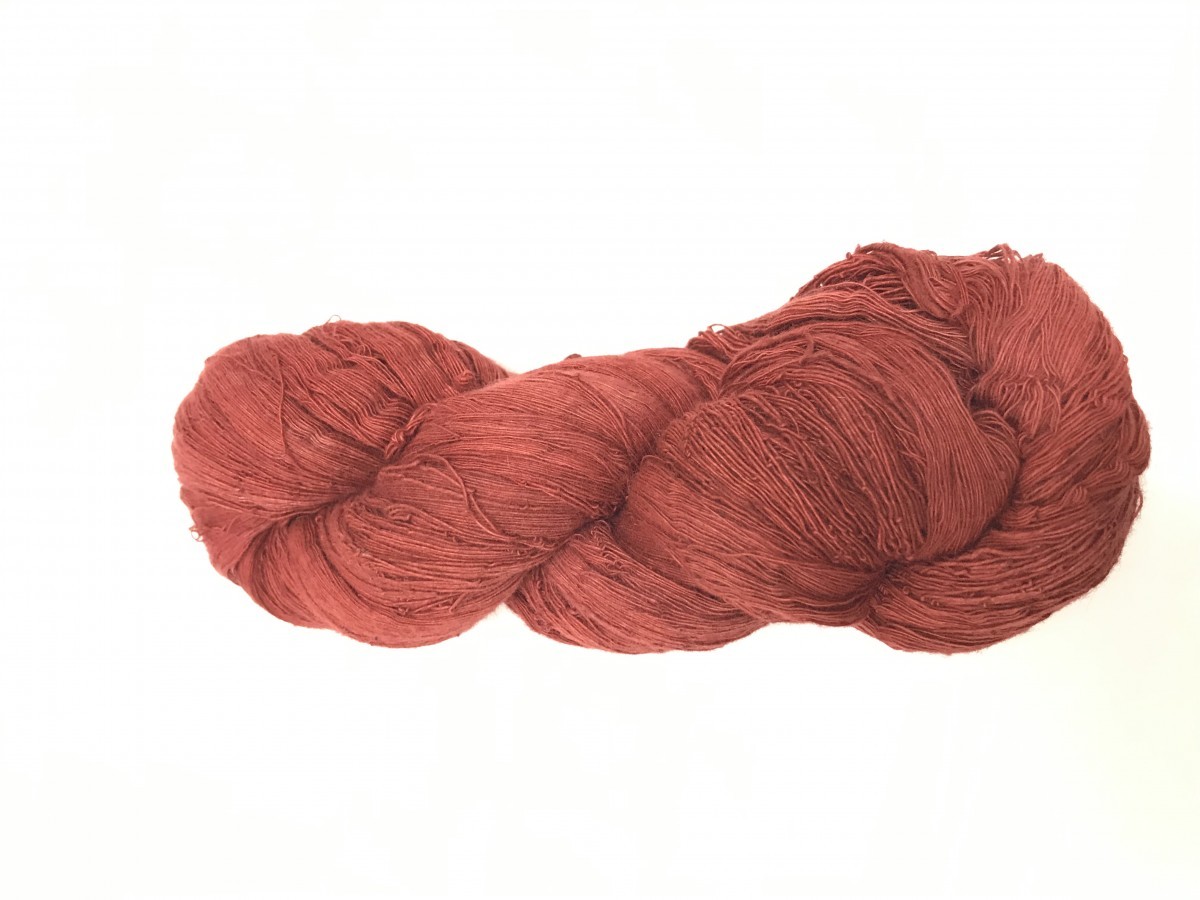 マダー(アカネ)で染め上げた手紡ぎ糸です。