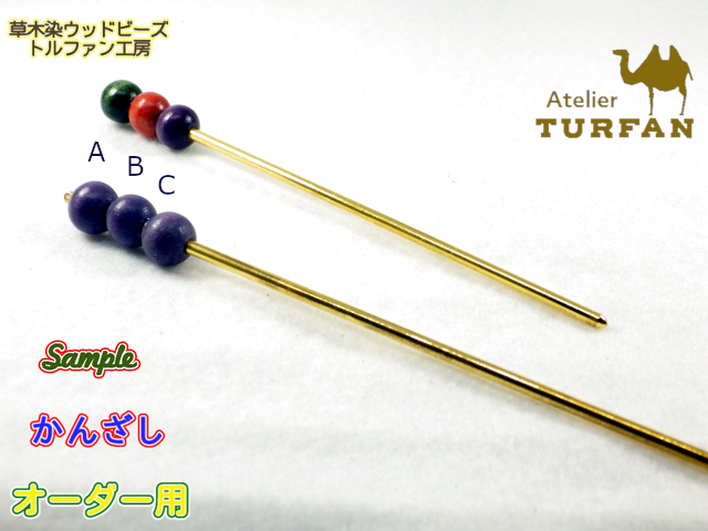 草木染ウッドビーズのかんざし 3連珠(512色選べます)7611