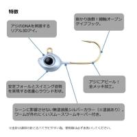 アジングに特化したオープンゲイプ金針採用ジグヘッドフックには、抜群に評価の高い「月下美人アジングジグヘッドTG」に搭載したショートシャンクオープンゲイプ金針を採用し、ダイワのお家芸である目玉付きジグヘッド「アジの魚色本能を刺激するリアル3Dアイ」搭載。釣れる要素をふんだんに詰め込んだ必釣ジグヘッド。フックサイズ:♯10入数:4