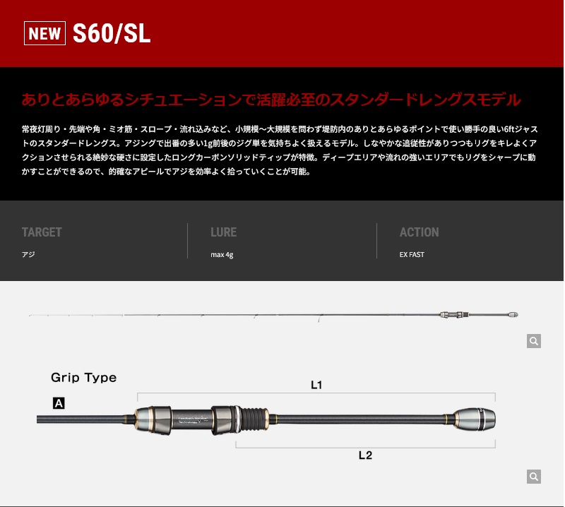 絶妙な硬さに設定したロングカーボンソリッドティップが特徴。