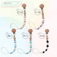 丸いパステルカラーのシリコンパーツとナチュラルウッドの組み合わせがとってもかわいい!