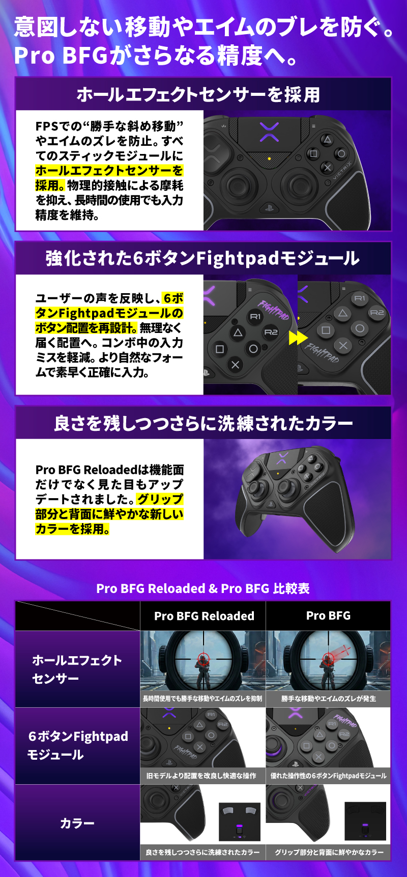 Pro BFGコントローラーは、PS5、PS4、PCでプレイすることができ、さらに公式大会でも使用できるよう、有線&無線両方に対応しています。長時間持続バッテリーを備え、専用アプリを使って細やかなカスタマイズも可能です。