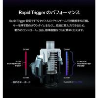 【Rapid Trigger のパフォーマンス】Rapid Trigger は、キーを押す間のダウンタイムをなくし、即座に再入力できるため、動作のコントロール、反応、照準調整をさらに素早く行えます。
