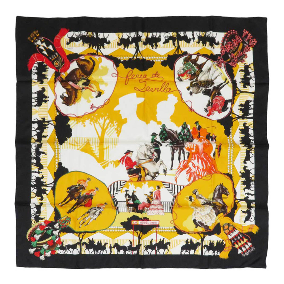 エルメス カレ 90 FERIA DE SEVILLA セビリアの休日 スカーフ ユニセックス ブラック イエロー系 HERMES 中古 【アパレル・小物】
