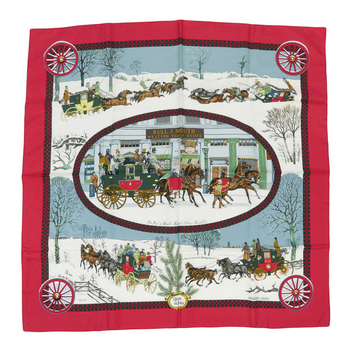 エルメス カレ 90 l'Hiver en Poste 冬の郵便馬車 ユニセックス レッド HERMES 中古 【アパレル・小物】