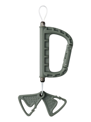 D形状のカラビナは高強度でサビないGFRP(ガラス繊維入強化プラスチック含有率55%)を採用し、45cmのびる内蔵Wセーフティロープの片側ループにはスナップホルダーを2pcs標準装備、もう一方のループには好みの小物グッズを取り付けできます。