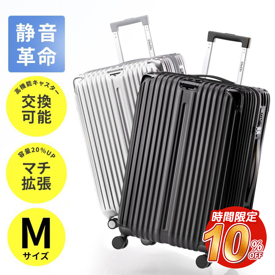 「耐衝撃+低騒音」スーツケース Mサイズ TSAロック 搭載2重コイルファスナー使用 キャスター交換可能 ダブルキャスター 360度回転 拡張機能付 超軽量