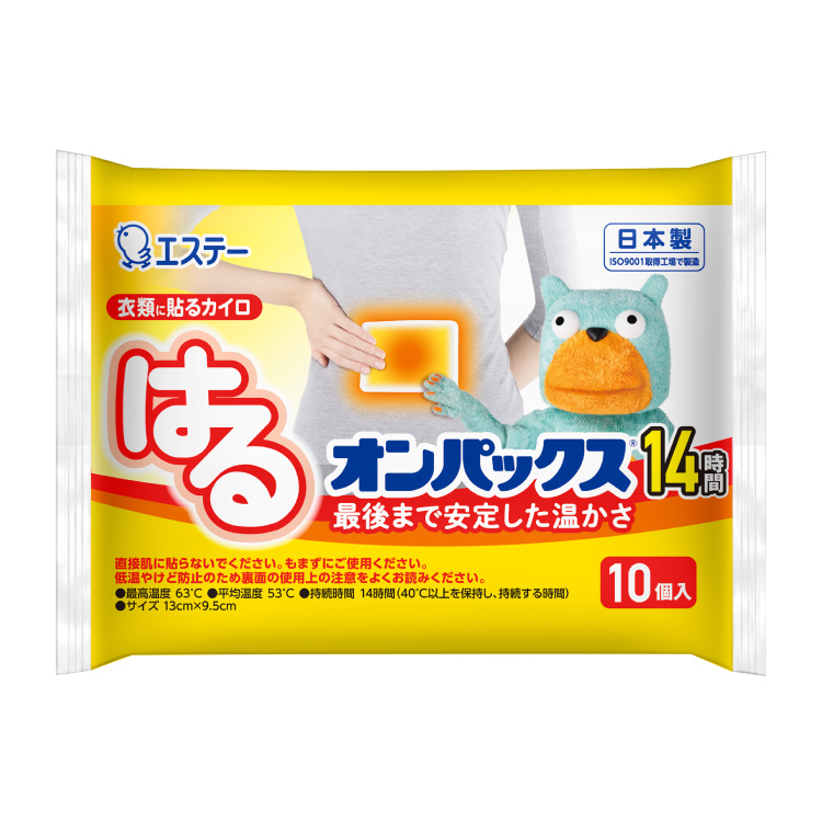 最後まで安定した温かさ●長時間安定した温度が持続する、貼るタイプのカイロです。●薄く、中身が均一で片寄らず、からだにぴったりフィットします。●温かさが14時間持続します。(ミニタイプは10時間)