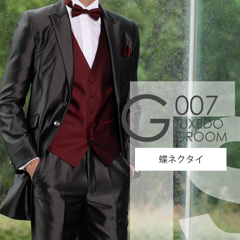 ダークグレー ロングタキシード G007【蝶ネクタイ】レンタルセット9点 選べるベスト・タイ・チーフ ◆4泊5日 往復送料無料 お直し可能◆