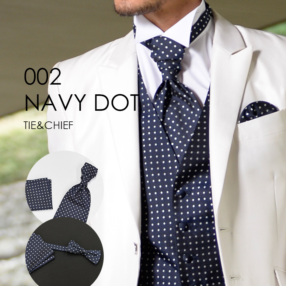 ユーロタイor蝶ネクタイ+チーフ 002Nネイビー水玉 お洒落なコーディネート★レンタル4泊5日★選べるユーロタイor蝶ネクタイ