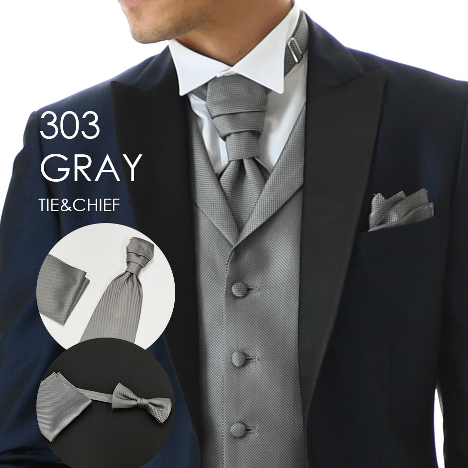 ユーロタイor蝶ネクタイ+チーフ 303Gグレー お洒落なコーディネート★レンタル4泊5日★