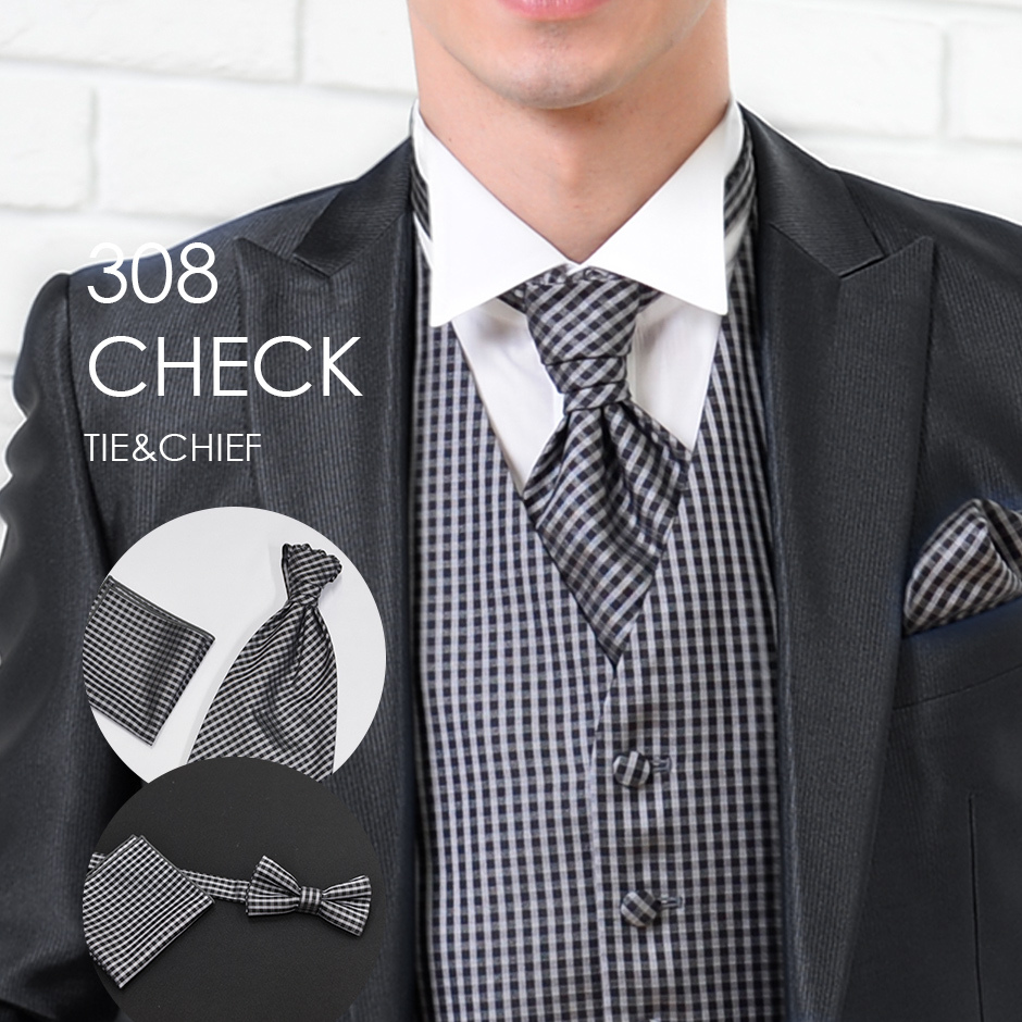 ユーロタイor蝶ネクタイ+チーフ 308CKギンガムチェック お洒落なコーディネート★レンタル4泊5日★