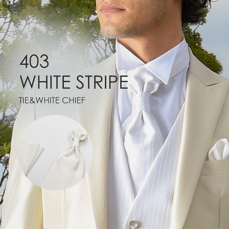 ユーロタイ+チーフ 403WSホワイトストライプ お洒落なコーディネート★レンタル4泊5日★