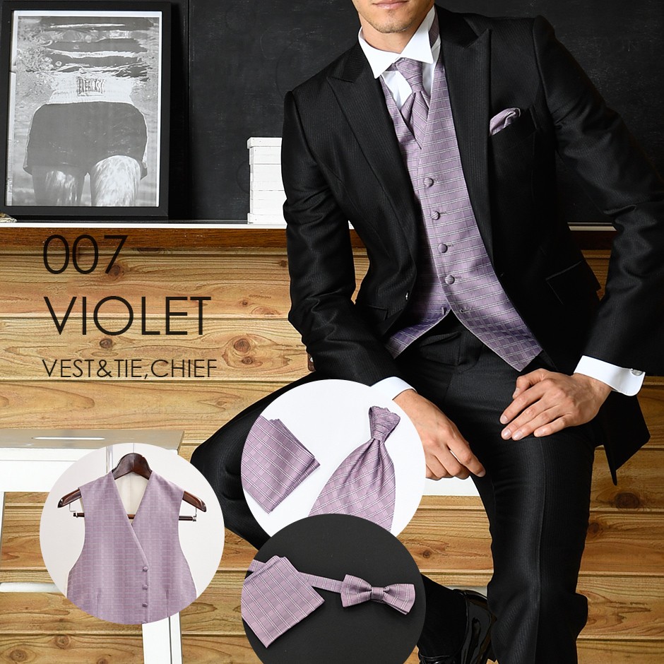 ベスト・タイ・チーフ 最大3L 007Vバイオレッド お洒落なタキシードの着こなし★小物3点 レンタル4泊5日★