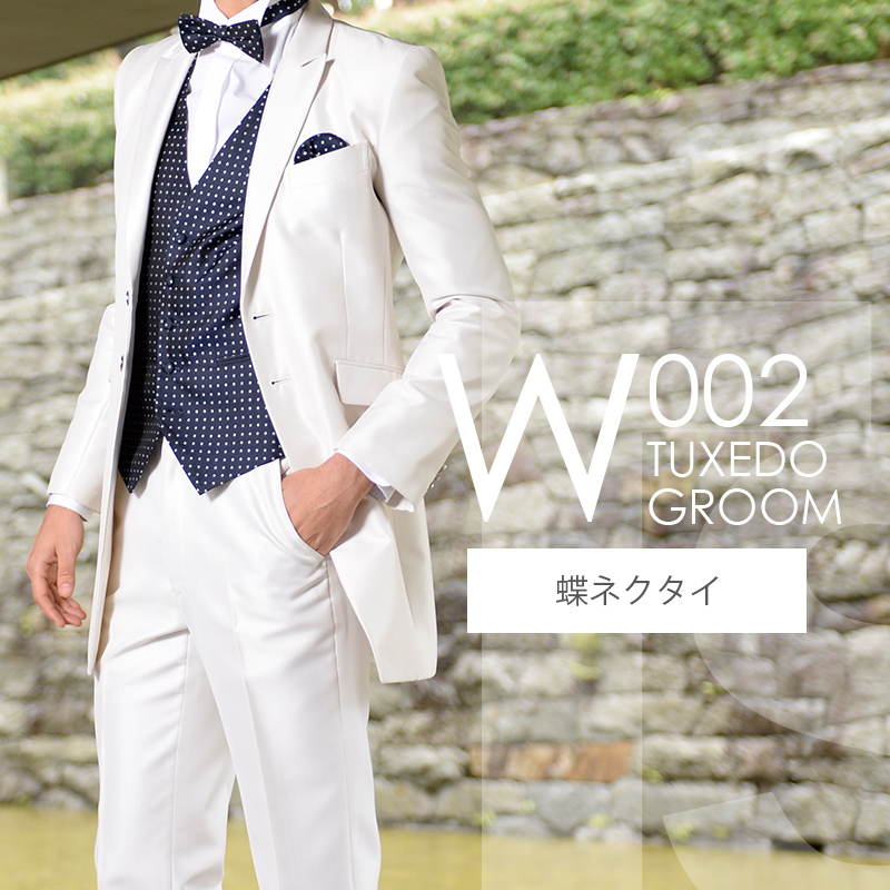 オフホワイト ロングタキシード W002【蝶ネクタイ】レンタルセット9点 選べるベスト・タイ・チーフ ◆4泊5日 往復送料無料 お直し可能◆