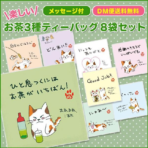 『にゃんこティーバッグ 8種類』メッセージ付 みたらしちゃんポリバック付 ティーバッグ 煎茶・抹茶入玄米茶・ほうじ茶 メール便送料無料(みたらしちゃん)