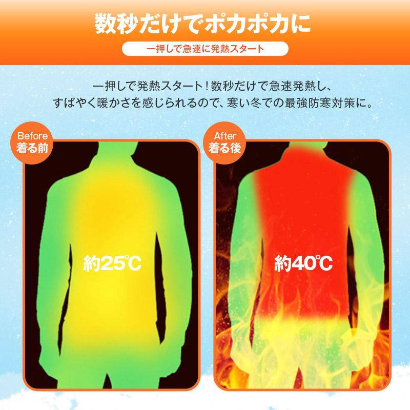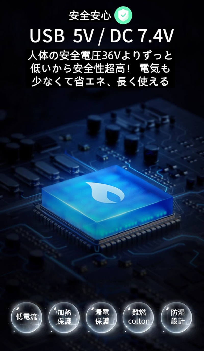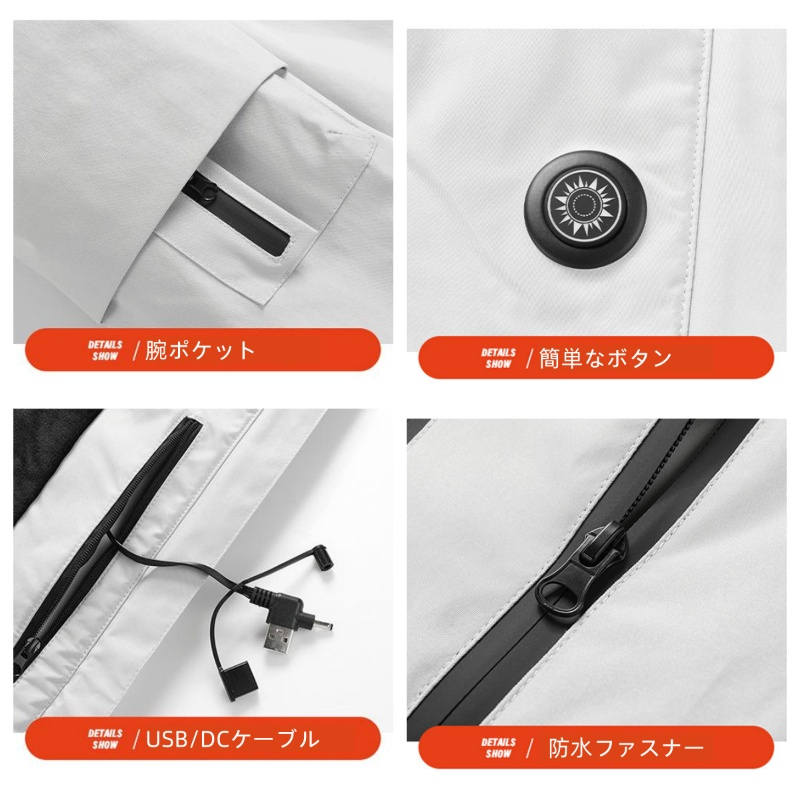 ジャケットはUSBケーブルが付属しており、市販のUSB 2A/5V以上の出力モバイルバッテリーで使用可能!